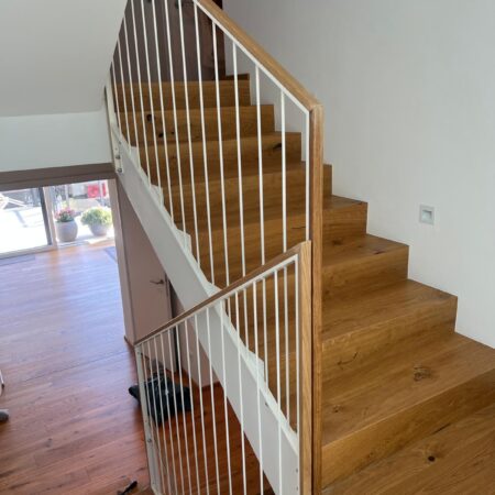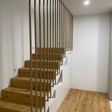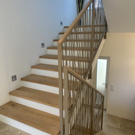 Besonders durch die Kombination mit farblich angepassten Holzhandläufen, passend zu Ihren Fussböden, stimmen sich diese Geländer gut an Ihre Galerie oder Treppe an.