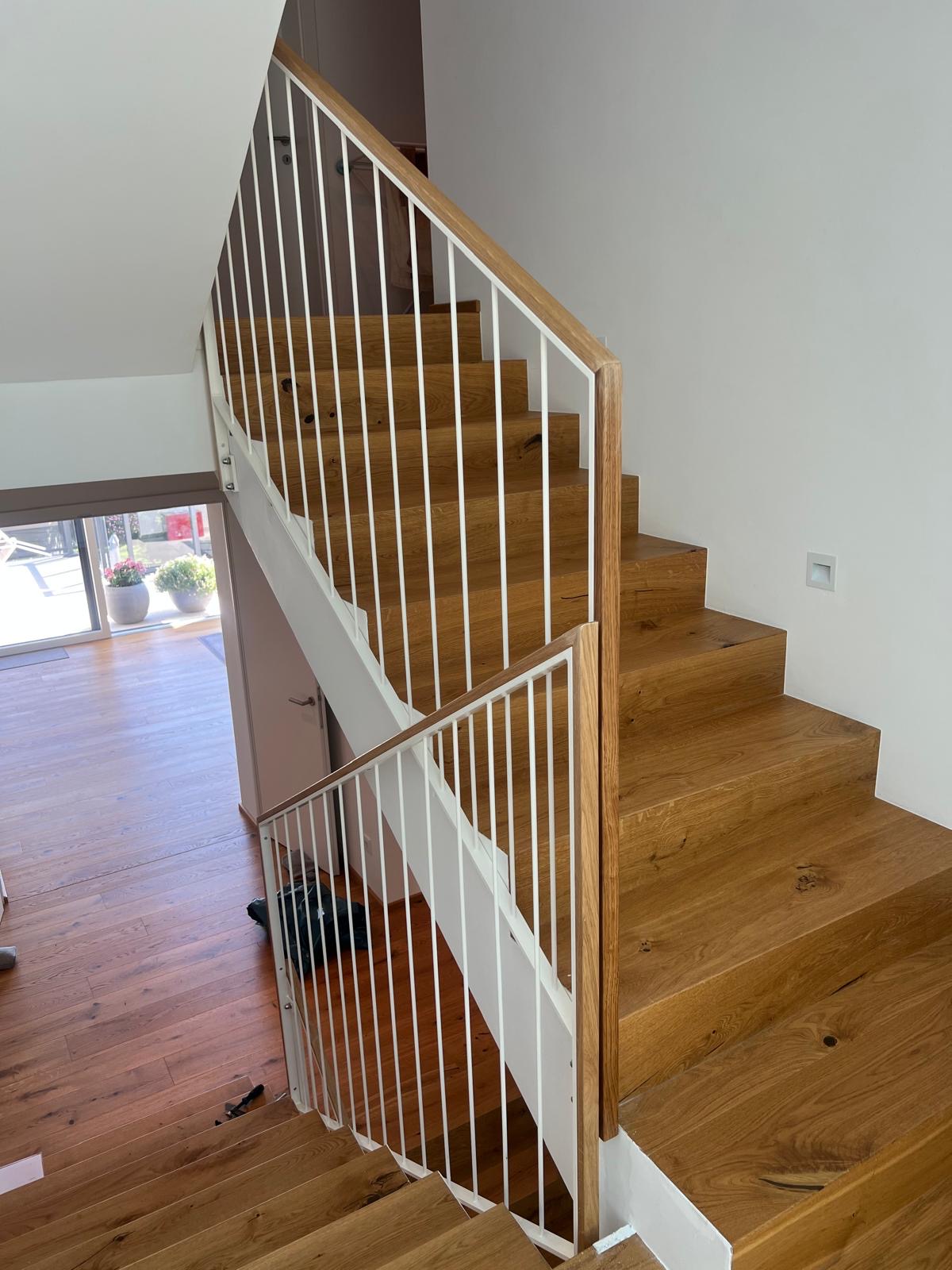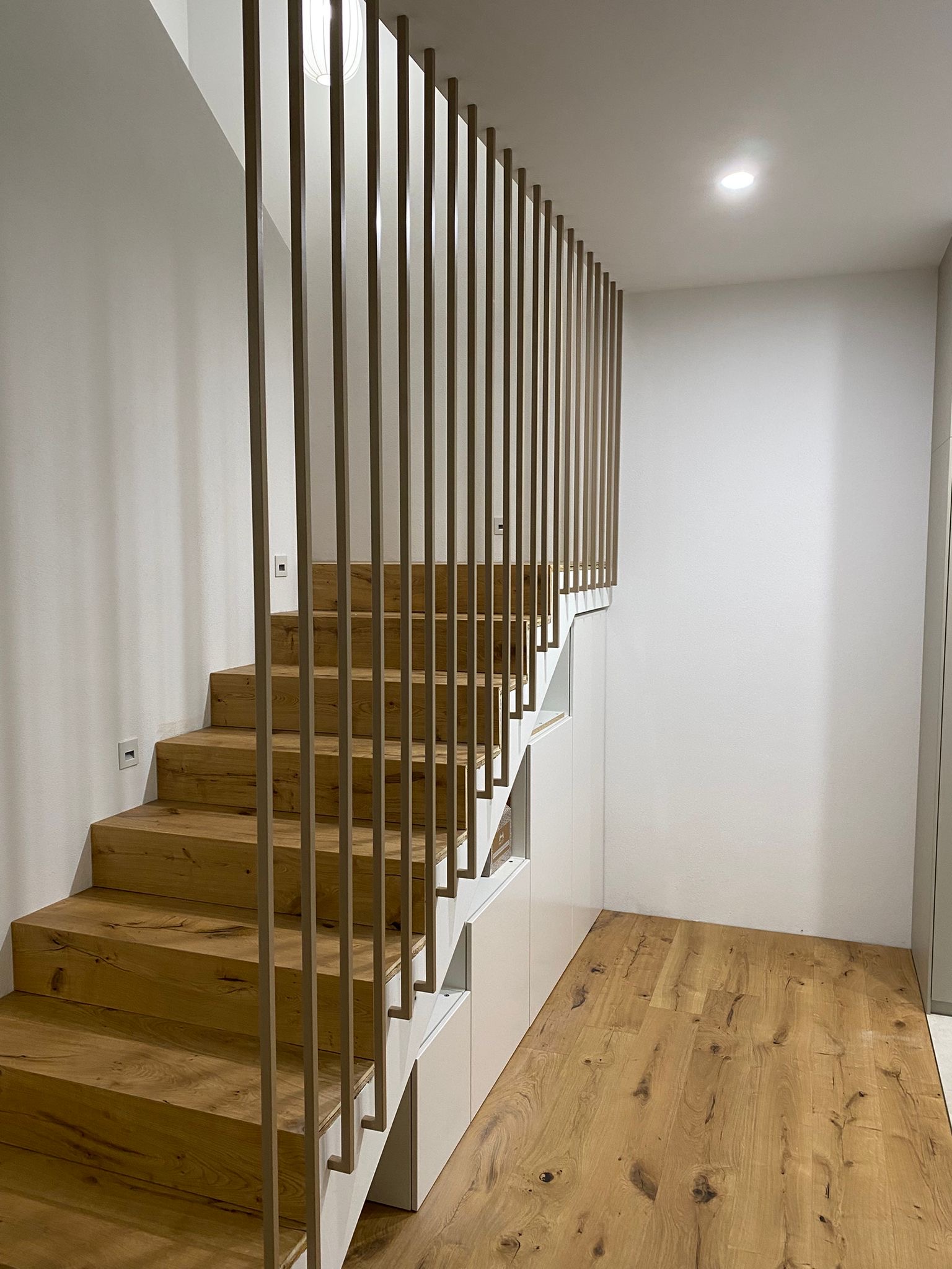 Besonders durch die Kombination mit farblich angepassten Holzhandläufen, passend zu Ihren Fussböden, stimmen sich diese Geländer gut an Ihre Galerie oder Treppe an.
